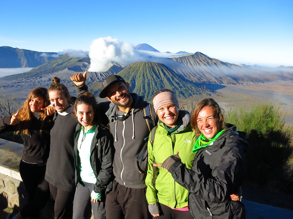 We all got up at 2:45am to start our trek to the sunrise viewpoint. The stars and our headlamps lit our path and in less than an hour, we arrived at a small pavilion. We drank ginger coffee and huddled to stay warm as we waited for the first glimpse of sunshine to touch the peak of Mount Bromo in the distance.