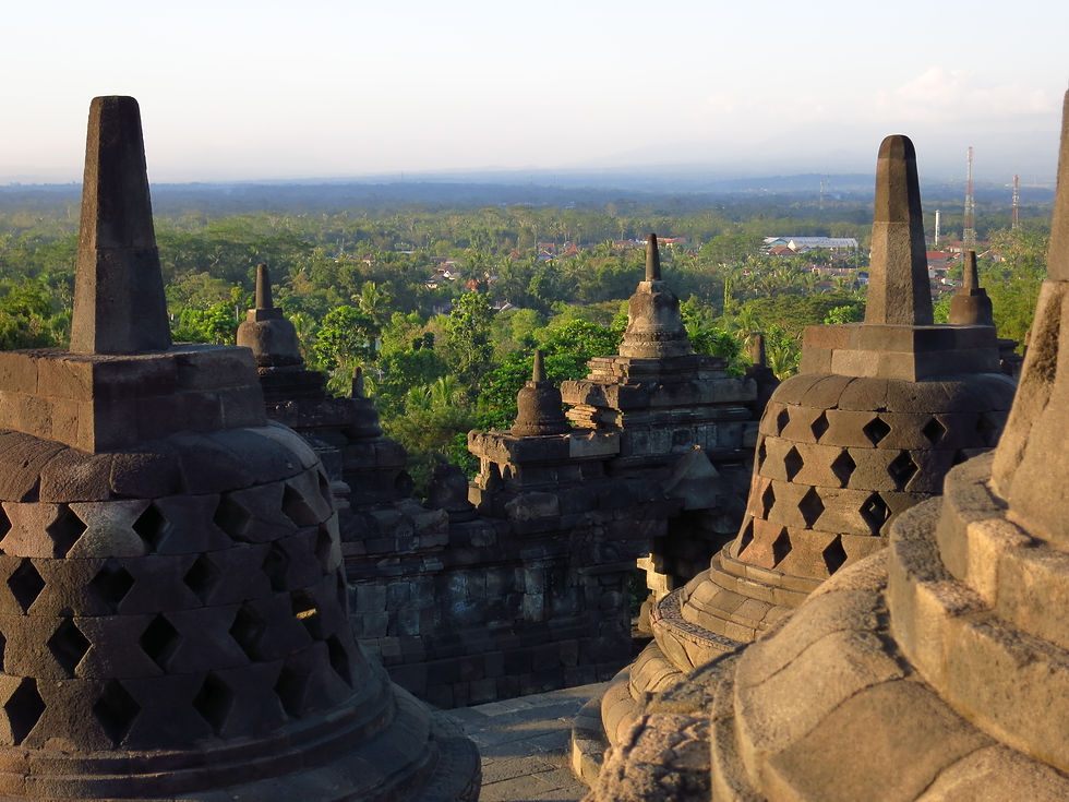 Borobodur is an enormous Buddhist temple; actually its the largest in the world! It's located just outside the city Yogyakarta and surrouned by serene, rolling green hills.